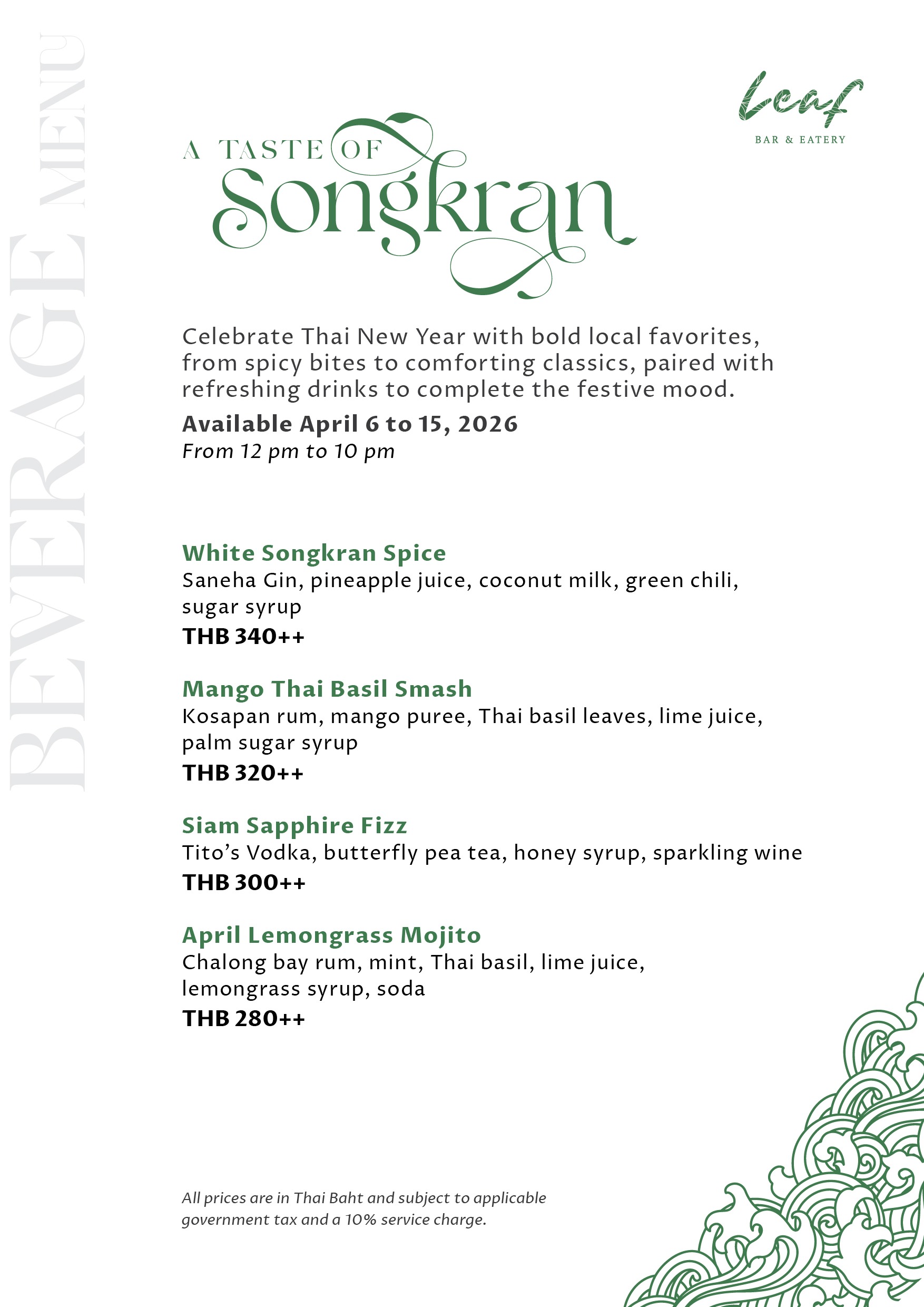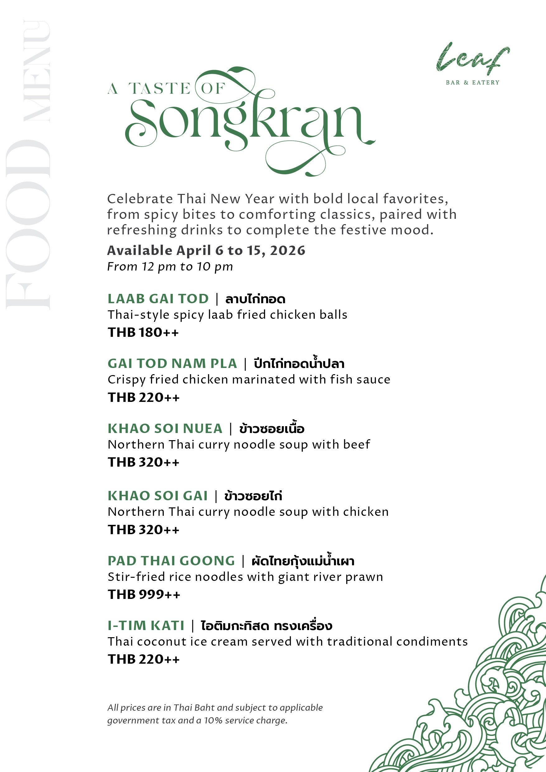 Experience the vibrant spirit of Songkran through the rich, comforting flavors of authentic Thai cuisine. Delight in a specially curated selection of six indulgent dishes, each crafted with care to bring out bold, satisfying flavors in every bite.